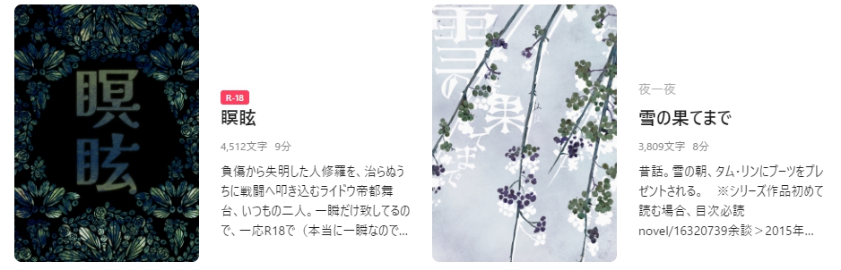 これは「その後、幸せに暮らしましたとさ」の表れとして書いたのですが、以降も定期的に番外編が更新される辺り、自分でも結構気に入ったシリーズ(関係性)の様です。