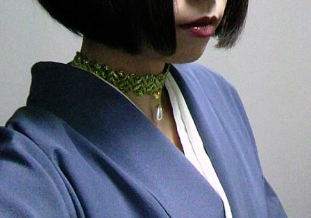 髪は切っちゃったので、チョーカーと耳飾りでドレスアップしました。