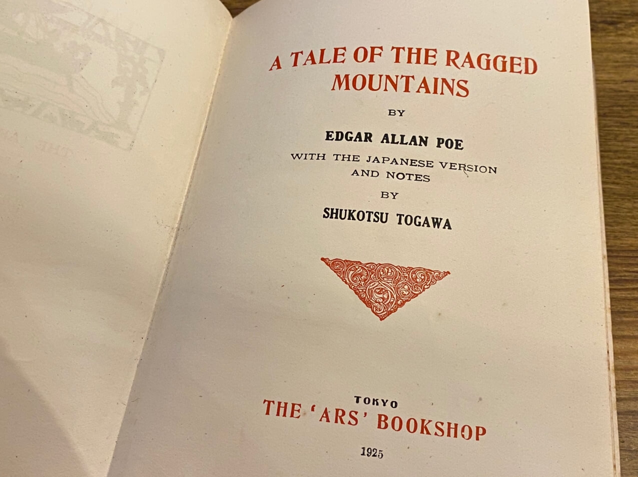 装丁の赤が愛らしい「アルス英文学叢書11」にあたる書籍。鋸山奇談の単なる翻訳本と思いきや「左頁に原文、右頁に翻訳」という教科書の様なレイアウト。ページ下部には注釈も載っており、至れり尽くせり。