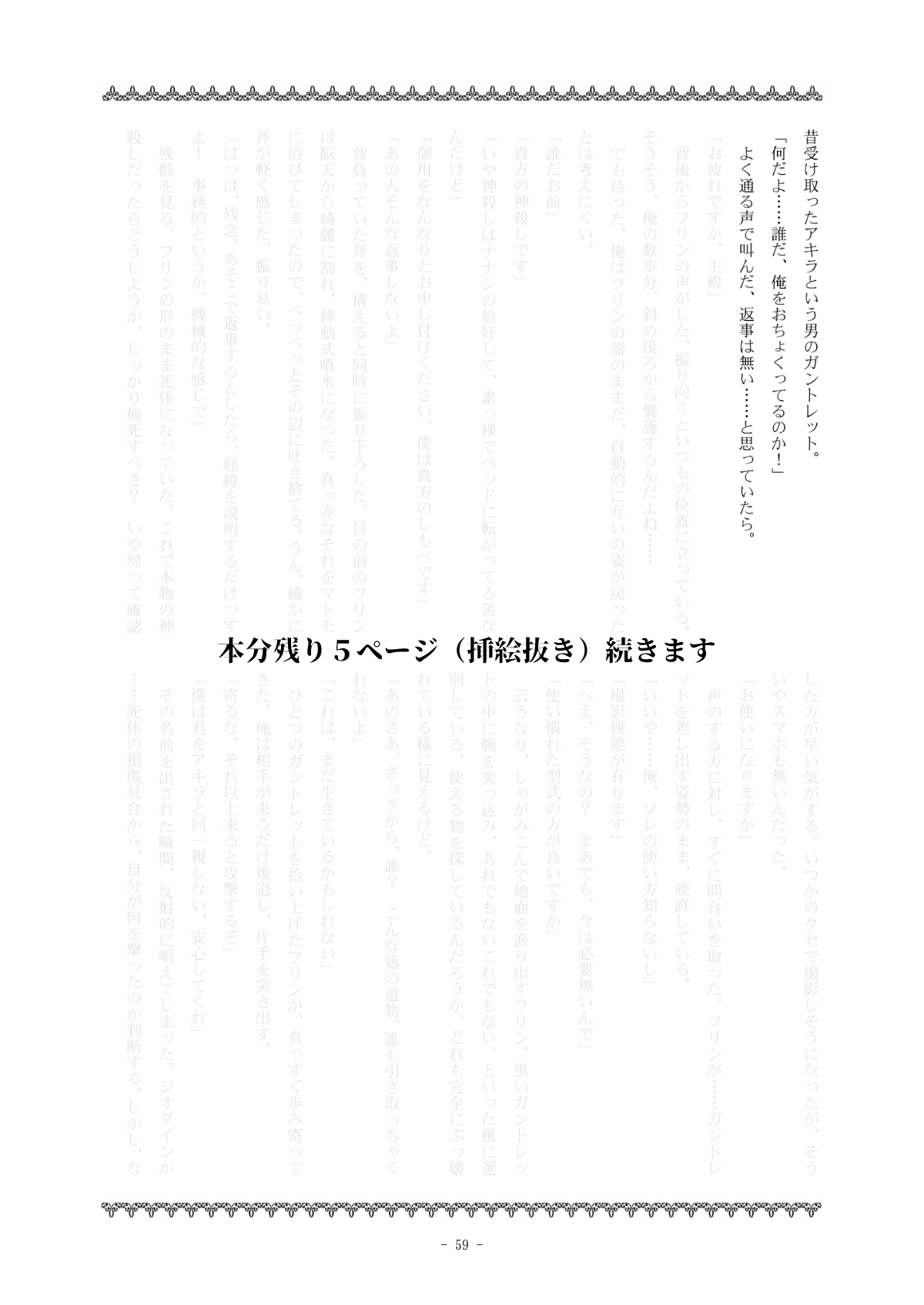 挿絵はたった2枚なので出し惜しみしてもなーと思い、両方載せました。挿絵2枚目の掲載ページは本来もう少し後ろになります。