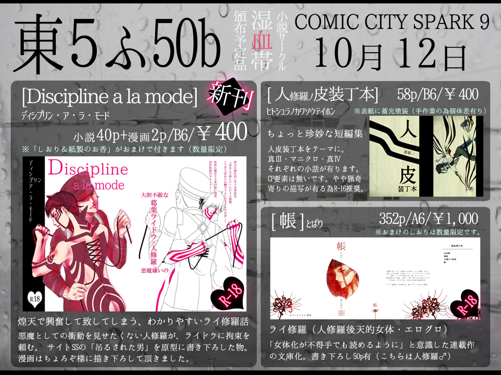 それにしても事後報告となってしまい、申し訳がないです。スペース位置や新刊情報をブログでロクにお知らせ出来なかったという…