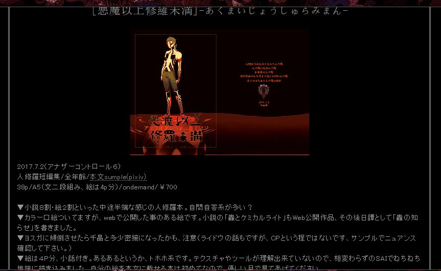 先日アナザーコントロール6にて、新刊「悪魔以上修羅未満」をご購入下さった方へのお知らせです。