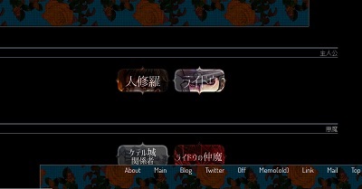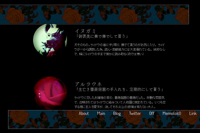 [PR] ×[PR]上記の広告は3ヶ月以上新規記事投稿のないブログに表示されています。新しい記事を書く事で広告が消えます。 誰も見ていなそうな人物設定を更新 PC版のみですが、人物設定をようやく弄りました。 仲魔に関しては、大した内容ではないですがややネタバレ有りです。 人修羅とライドウのページにも、押し付けない程度の情報を増やしたいと思っております… アマツミカボシ、アリスなども増える…予定。 ケテル城の面子は、ビフロンス、セエレなどです(まだリンクは貼ってないです) [1回]PR コメント コメントを書く コメントを書く コメント送信