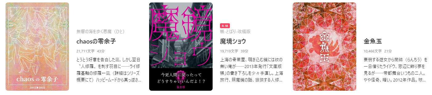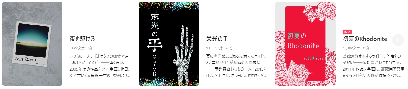 この3本は2012~2013年作品ですが、長編一章より断然直し易い。今の書き方に寄ってきた頃かなと思います。