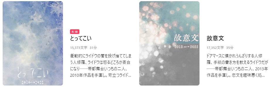 pixiv手直し再録系は、複数まとめて更新報告でいいか、というノリになってきました……