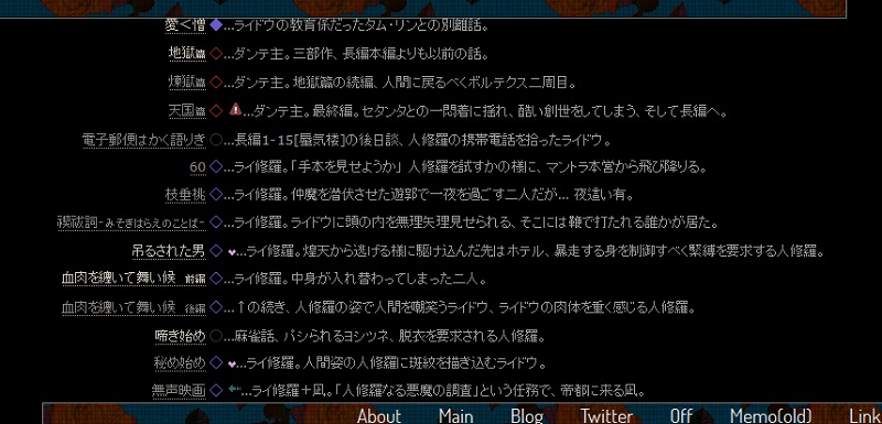 作品説明も、やや具体的に変更してあります(まだ全ての作品に対して変更が出来ていないので、途中からは以前の説明のままです)