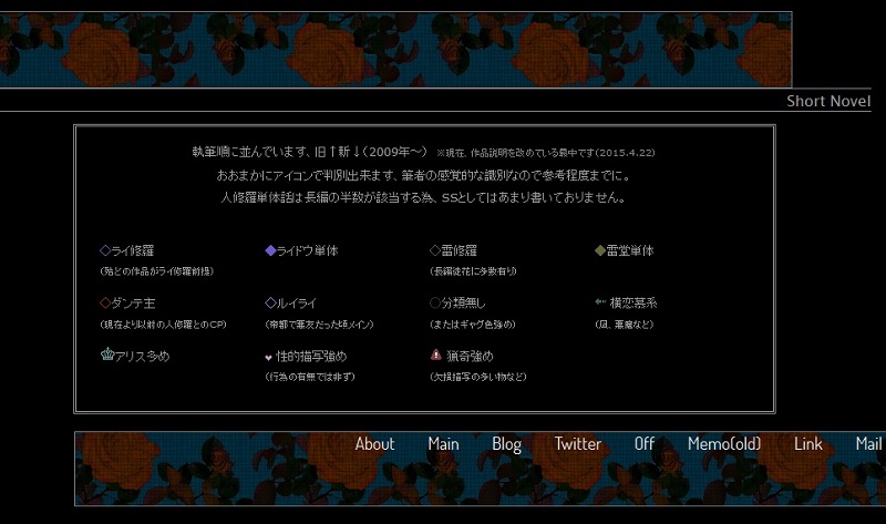 永らく放置していたSS部分を少し整頓しました。