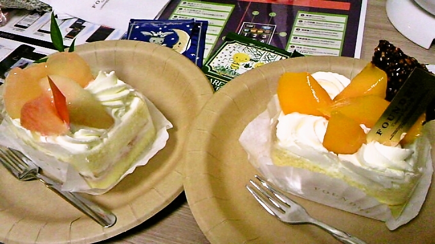 右上:桃のショートケーキがとても美味しかったです、ケーキはやはり瑞々しい果物のショートが一番。