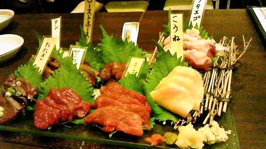 左下:色々食べました、肉はやはり生が一番。(馬のお肉でした)