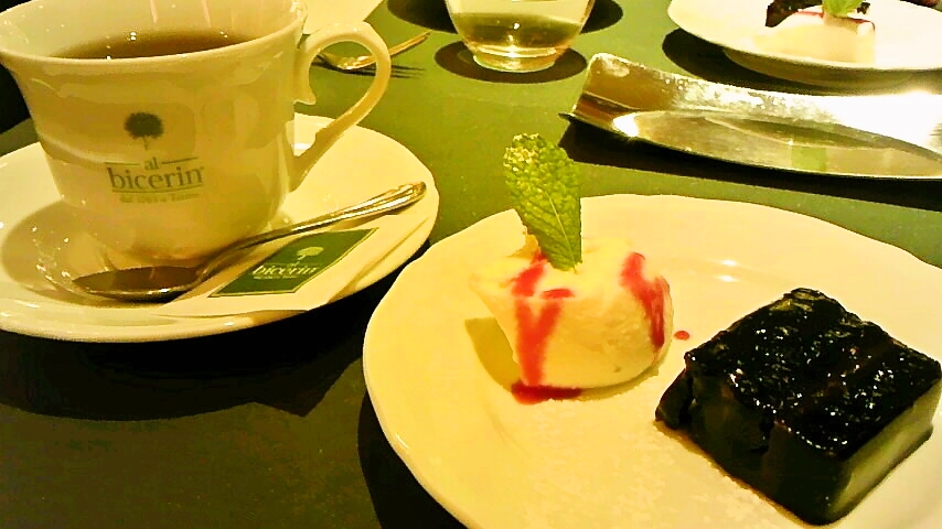 右下:高島屋のカフェ、ちゃっかりラザニアも食べました。クロスの色が上品。
